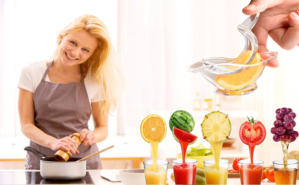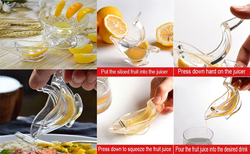 New Acrylic Manual Lemon Slice Squeezer, Portable Transparent Fruit Juicer, Elegance Bird Shape, Hand Juicer for Orange Lemon Lime Pomegranate